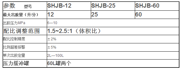 SHJB系列混膠機適用于環氧樹脂灌注膠等低粘度雙組份膠的噴涂。設備自動完成物料的吸取、增壓、計量、混合,自動化程度較高。該機計量精度高,系統穩定配比精度±2%,配比報警范圍±5%,報警后自動停機。每次打膠的配比及數量都在觸摸屏上顯示并存儲到U盤之中,方便日后查詢和質量監控。