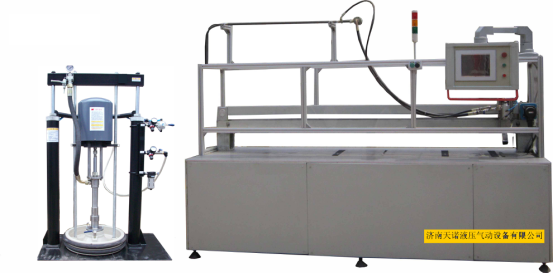 1.該機涂膠機部分分為供膠系統(tǒng)和計量系統(tǒng),供膠系統(tǒng)采用55加侖壓盤泵供膠,其中壓盤泵增壓比為50:1。