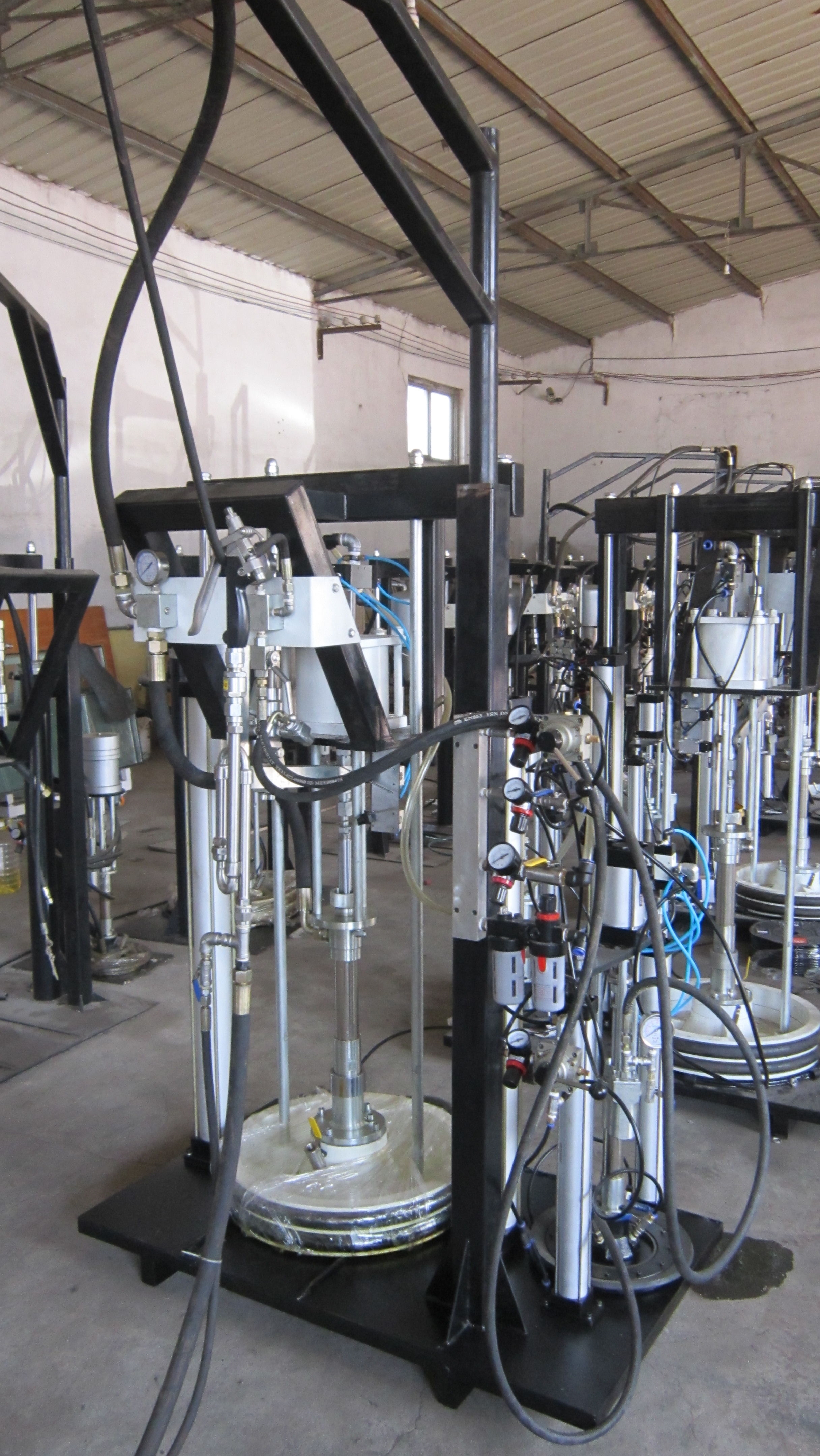 ▲ 膠泵:A膠泵、B膠泵和配比泵均采用我公司研制的高粘度流體往復(fù)式高壓柱塞泵,結(jié)構(gòu)簡單,性能穩(wěn)定。高壓閥口均采用合金材料進行特殊處理,硬度可達HRC70o,能有效避免因膠中的硬質(zhì)顆粒損壞閥口。密封件采用強化聚四氟乙烯,耐摩擦抗腐蝕,可適用絕大多數(shù)化學(xué)溶劑。使得性能更加穩(wěn)定,壽命更長。控制閥采用靜面磨削,確保泵內(nèi)壓力無泄漏。
